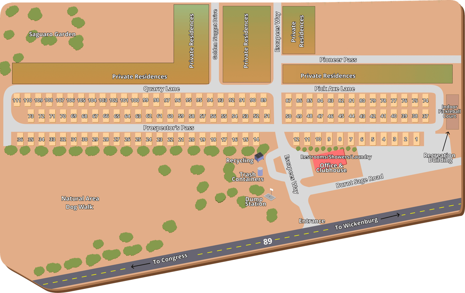 Enjoy direct access to nearby Bureau of Land Management (BLM) lands, perfect for hiking, off-roading, wildlife viewing, and exploring Arizona’s natural desert beauty. Our location makes it easy to start your adventure right from the park.Tailored to meet the needs of every camper in the area, our services include: